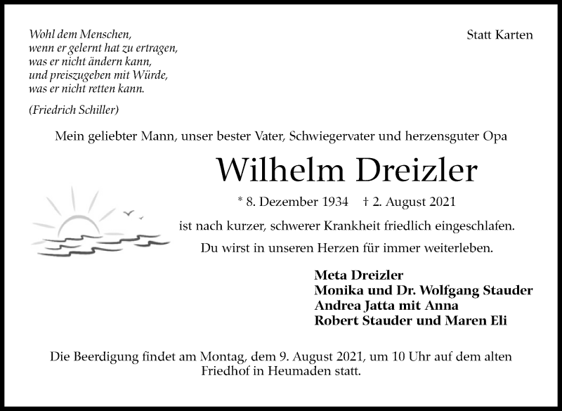 Hier finden Sie alle Traueranzeigen aus der Zeitung, die bisher für Wilhelm Dreizler erschienen sind. Weitere Traueranzeigen, die in der Zeitung erscheinen, werden hier ebenfalls aufgelistet