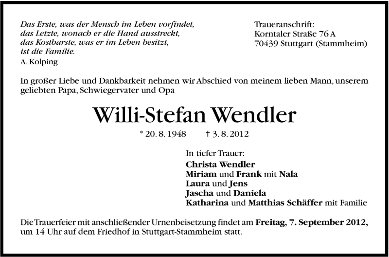 Hier finden Sie alle Traueranzeigen aus der Zeitung, die bisher für Willi-Stefan Wendler erschienen sind. Weitere Traueranzeigen, die in der Zeitung erscheinen, werden hier ebenfalls aufgelistet