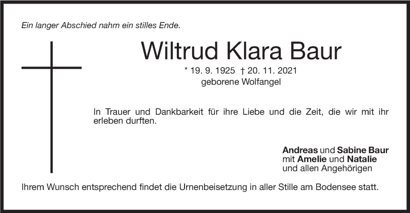 Hier finden Sie alle Traueranzeigen aus der Zeitung, die bisher für Wiltrud Baur erschienen sind. Weitere Traueranzeigen, die in der Zeitung erscheinen, werden hier ebenfalls aufgelistet