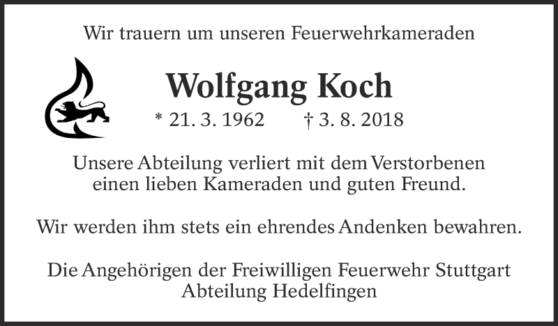 Hier finden Sie alle Traueranzeigen aus der Zeitung, die bisher für Wolfgang Koch erschienen sind. Weitere Traueranzeigen, die in der Zeitung erscheinen, werden hier ebenfalls aufgelistet
