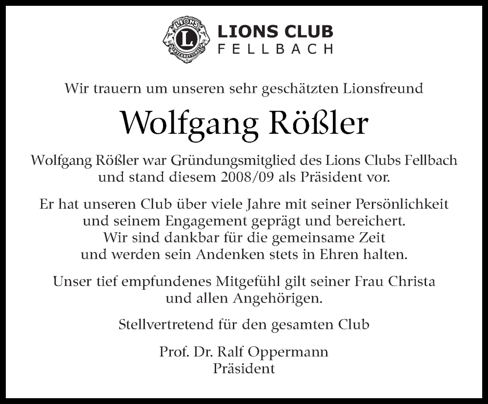 Hier finden Sie alle Traueranzeigen aus der Zeitung, die bisher für Wolfgang Rößler erschienen sind. Weitere Traueranzeigen, die in der Zeitung erscheinen, werden hier ebenfalls aufgelistet